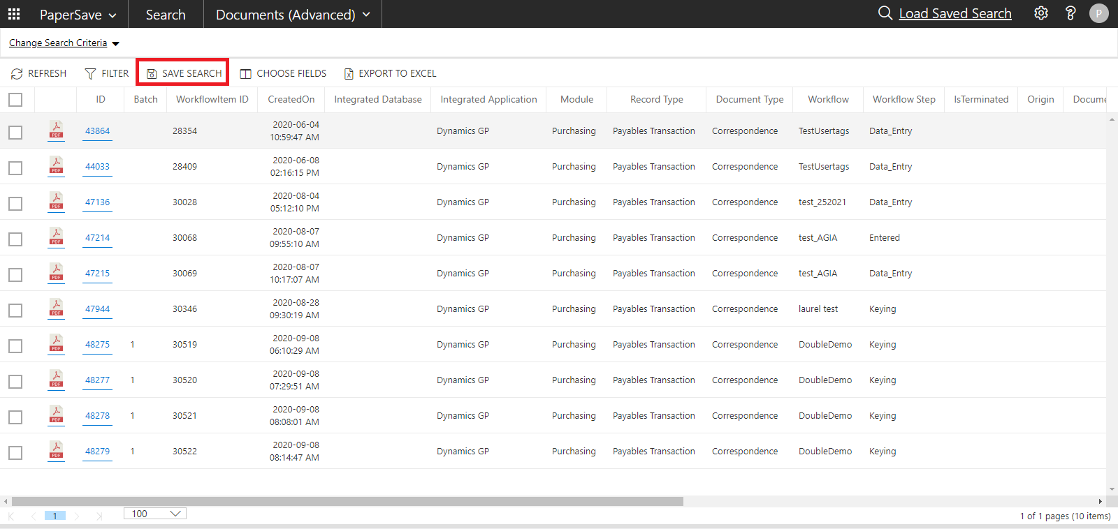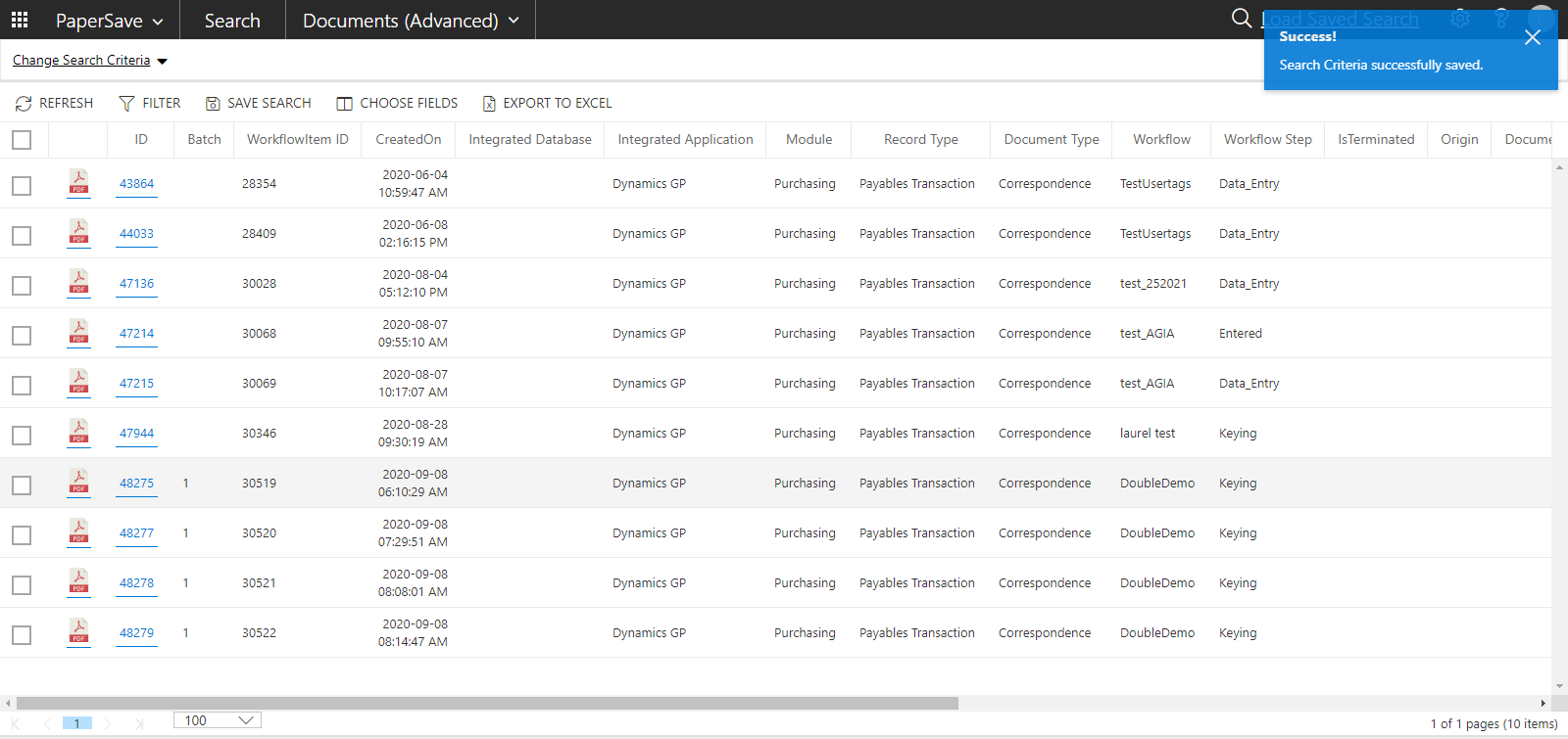 - Once you enter the Master password, your query will be saved and available for all PaperSave users, as shown below.