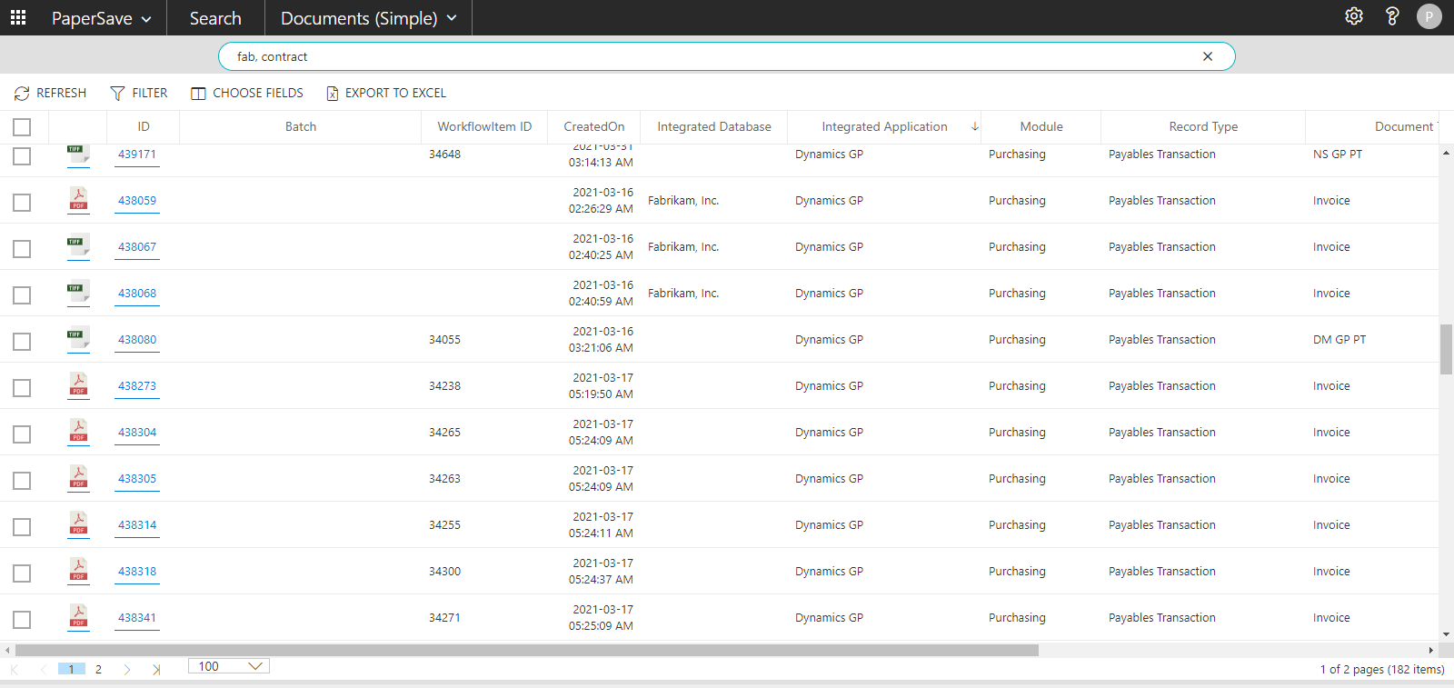 When you navigate to the Search Area, Documents (Simple) is loaded by default. Follow the below steps to perform a simple search: