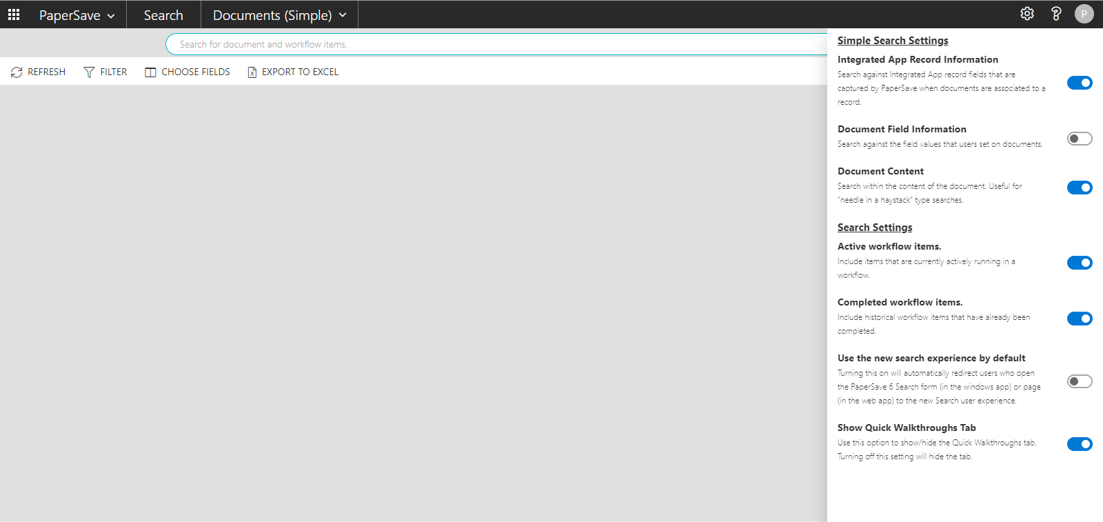 Turn ON this option to be redirected to the new PaperSave 7 Search experience when accessing the PaperSave 6 Search.