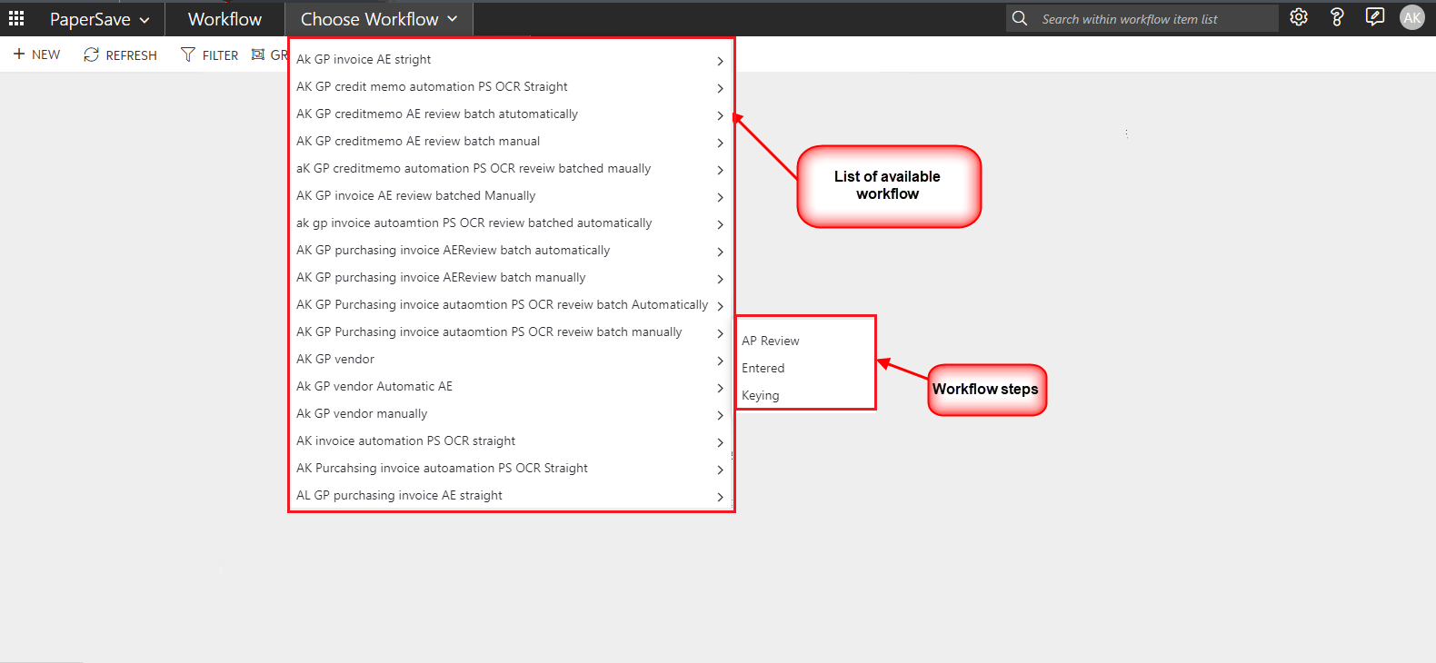 Note: The Workflow items will be loaded in the Workflow list based on last accessed Workflow upon subsequent login.
