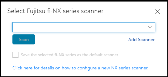 Tip: See the instructions to configure new fujitsu fi-NX series scanner by clicking on the link "click here for details on how to configure a new NX series scanner" at the bottom part of the select Fujitsu scanner dialog.