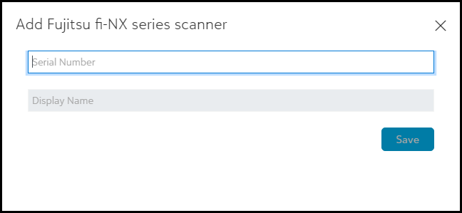 • Click on "Add Scanner" to add a new Fujitsu fi-NX series scanner to the scanner list by entering required details as shown below. Click on Save to add the scanner to the existing list.