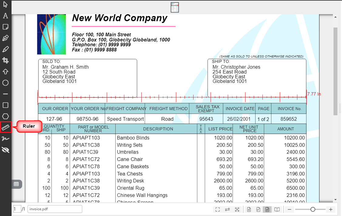 Ruler: This tool is used to measure the actual length of a part of the page of the current document.