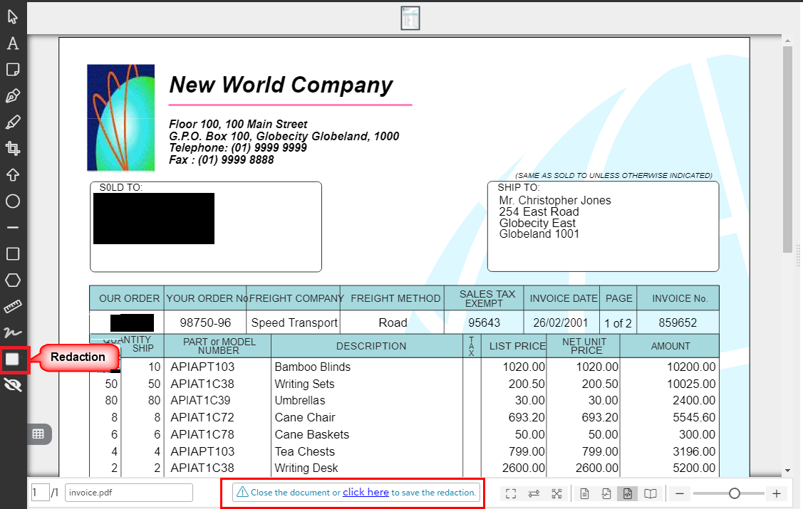 You will need to confirm the redaction once it has been applied by clicking on the "Click here" link as shown in the above figure to save the redaction changes.