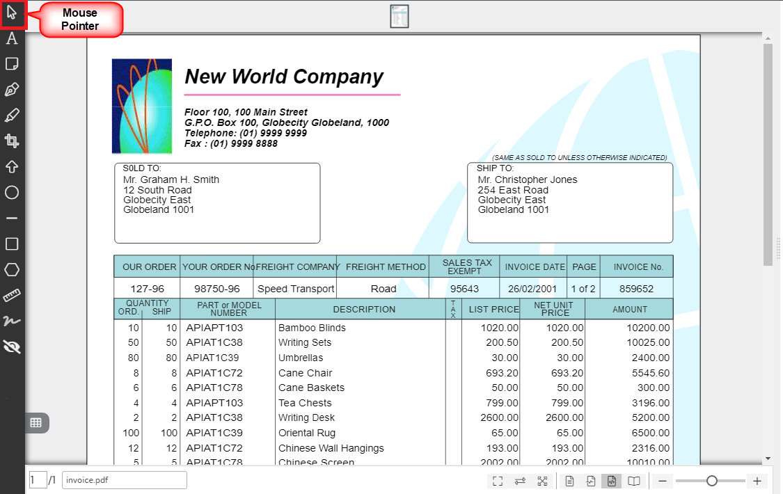 MOUSE POINTER : This pointer enables you to select annotations on pages so that you can move them or delete them.