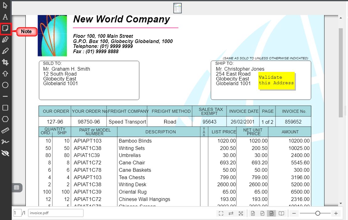 Select this option and click on the desired location on the document where you want to add a Note and the Add Note annotation box will be displayed. Here, you can select the icon from the list and add the note in the Contents box.