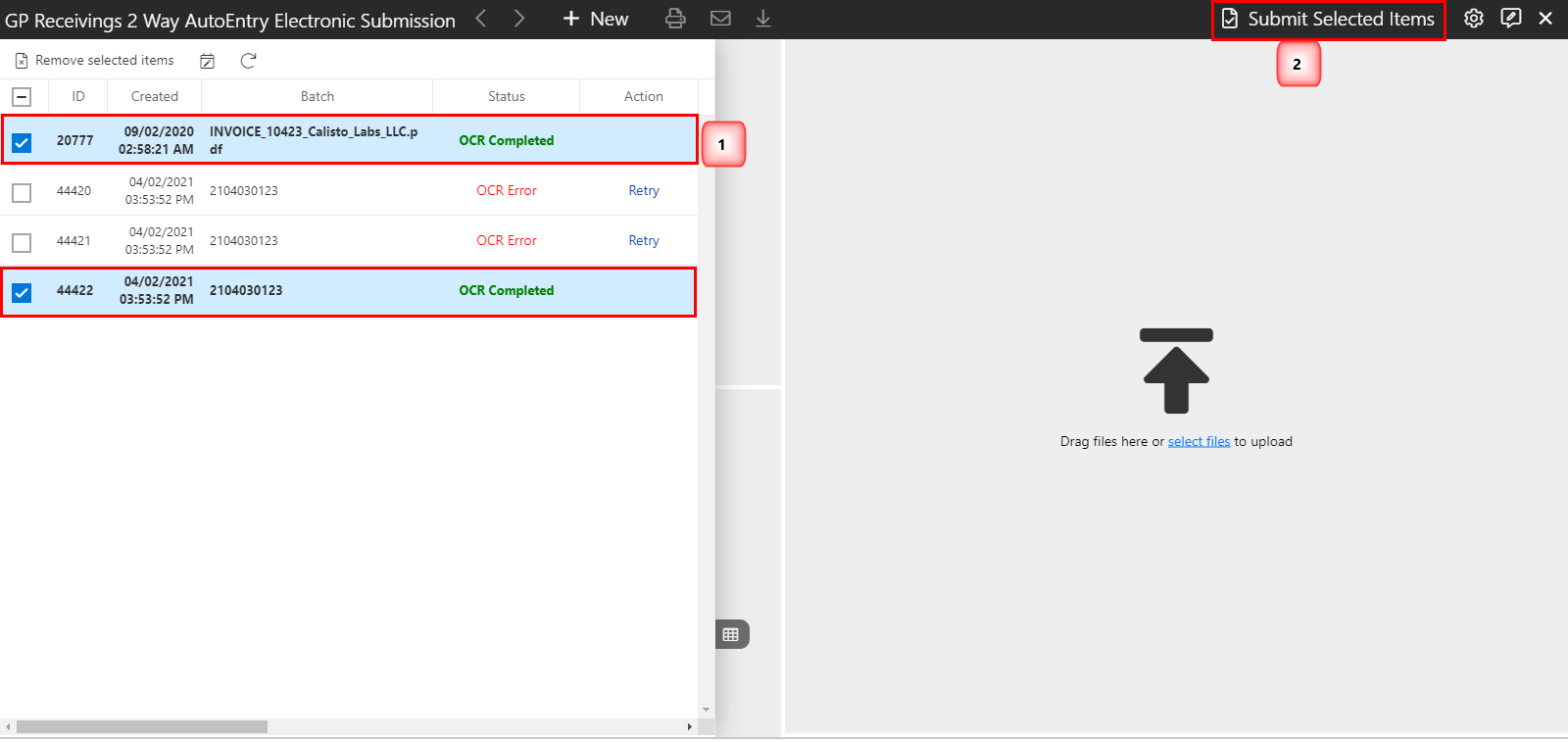 - Select the multiple items from the unsubmitted item list that you wish to submit.