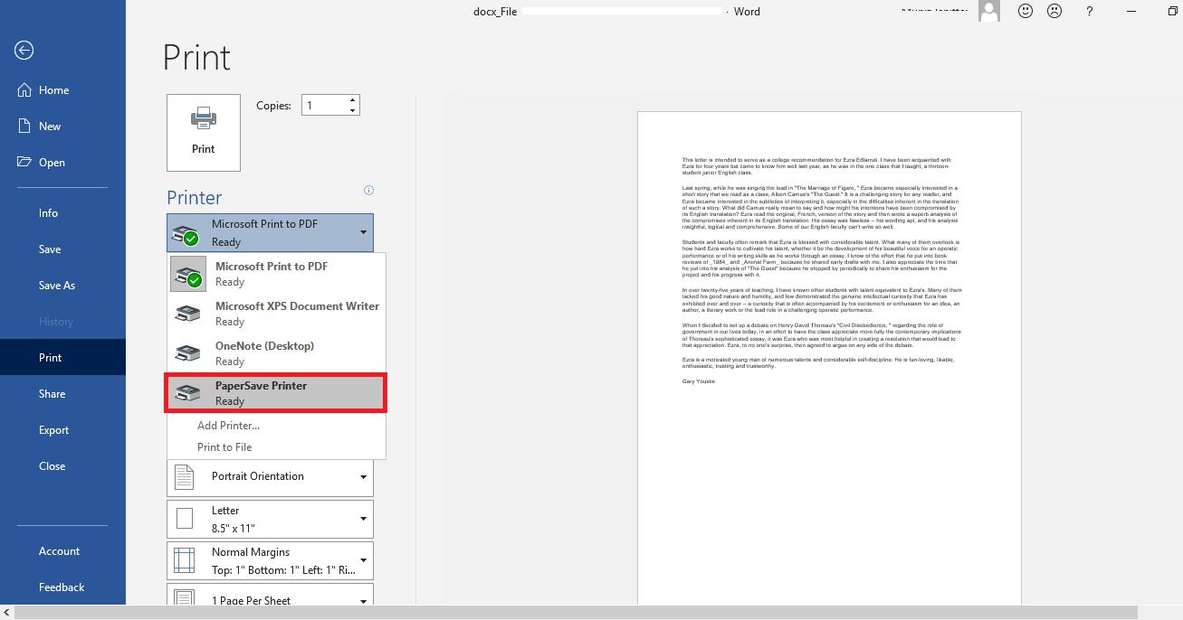 2) Now, expand the printers list, select the PaperSave Printer, and click on the Print option as shown below.