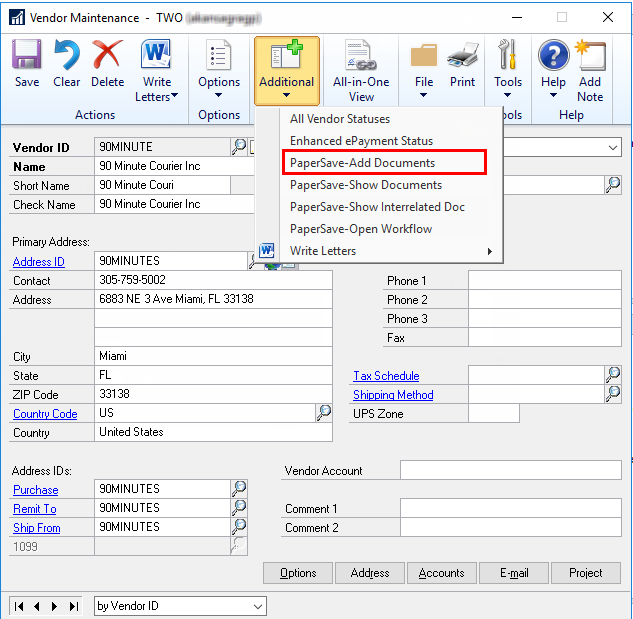Follow the below steps to add a new document directly to Dynamics GP record: