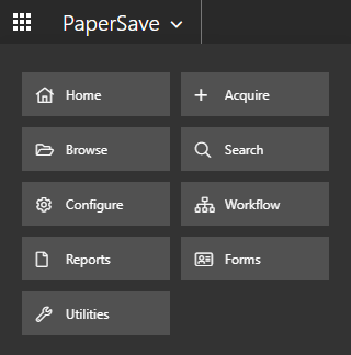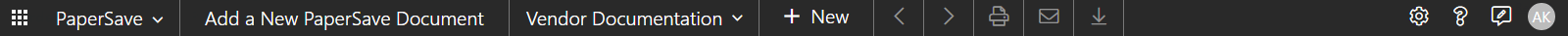 In the upper-left corner of the toolbar, you will see the PaperSave navigation menu, which offers to navigate to all the PaperSave areas, as shown in below screen: