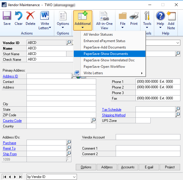 You can view the PaperSave documents associated with Dynamics GP records by following the below steps: