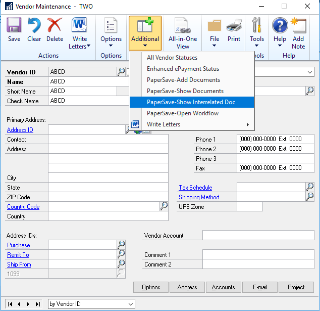 Follow the below steps to view the interrelated PaperSave documents associated with a Dynamics GP record:
