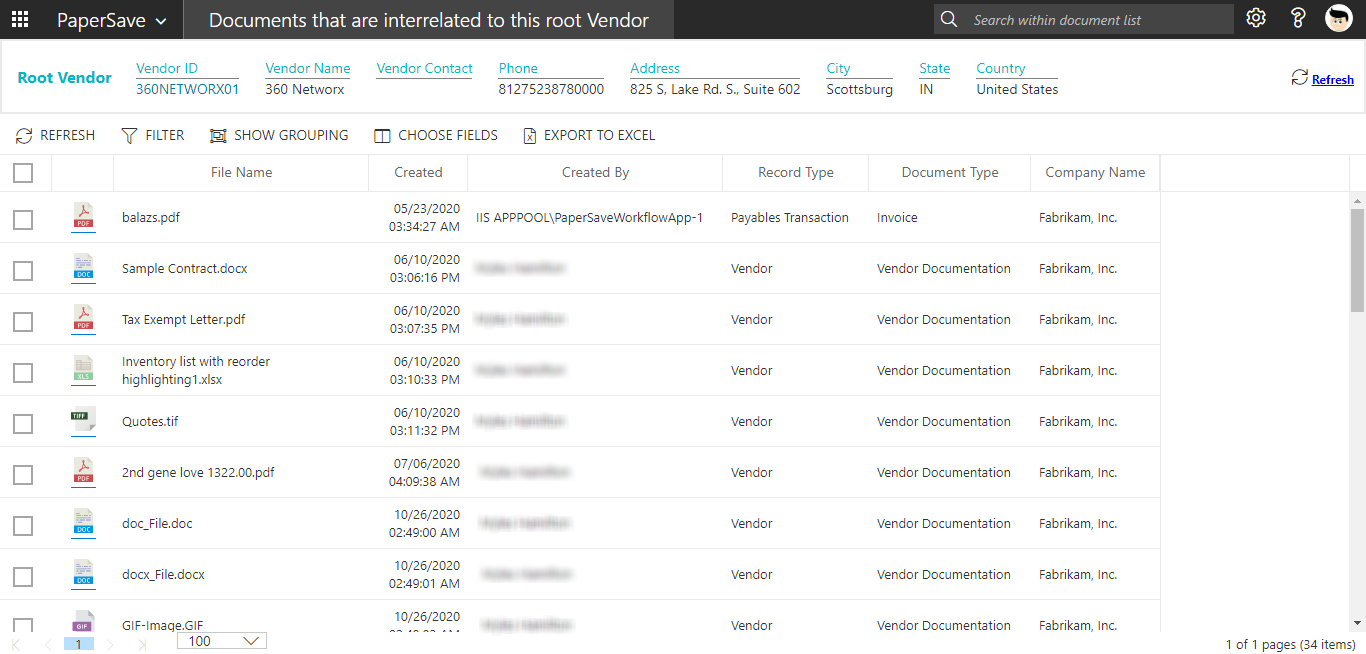 Note: If there is only one document interrelated with the Dynamics GP record, then upon clicking the PaperSave-Show Interrelated Documents, the document will directly open in an item viewer.