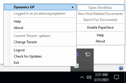 Generally, if you have already logged in to the PaperSave Windows Client and open the Dynamics GP, then PaperSave is automatically enabled for Dynamics GP.
