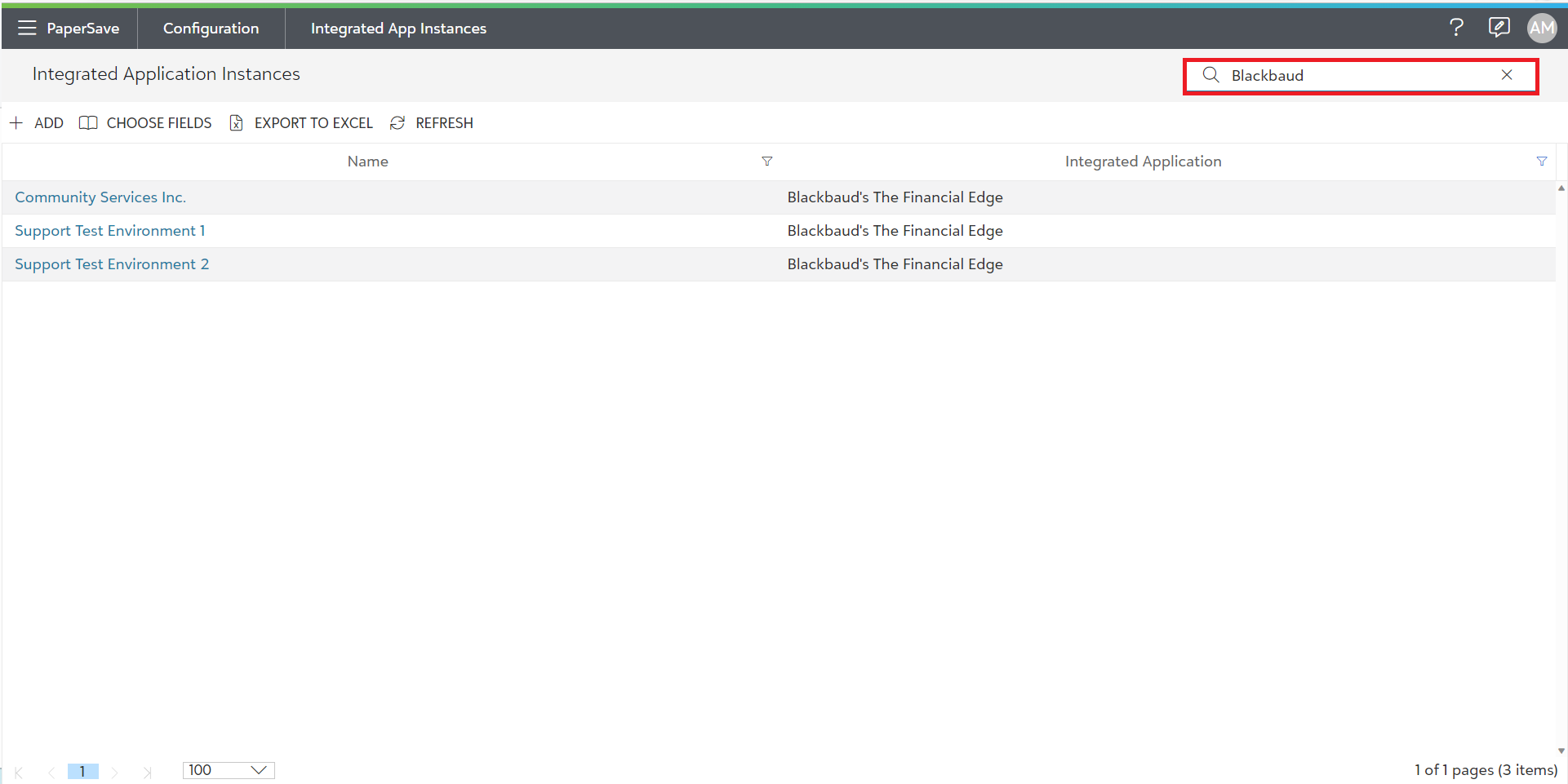 1) Click on Integrated App Instance in the Application Integration section of the Configuration Area.