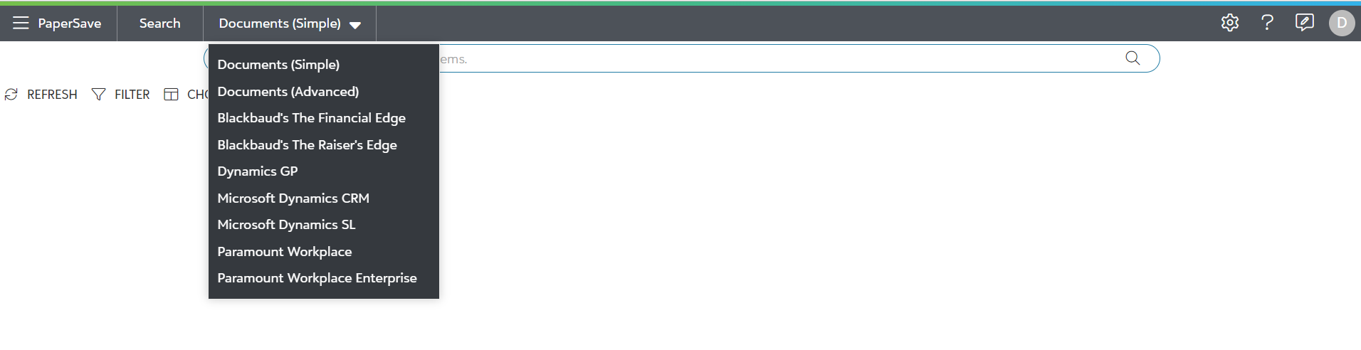 Search Area facilitates you to search for records of an Integrated application for desired Integrated Application Instance, view the documents associated with one or more records, and add new documents to one or more Integrated App records using available File capture options.