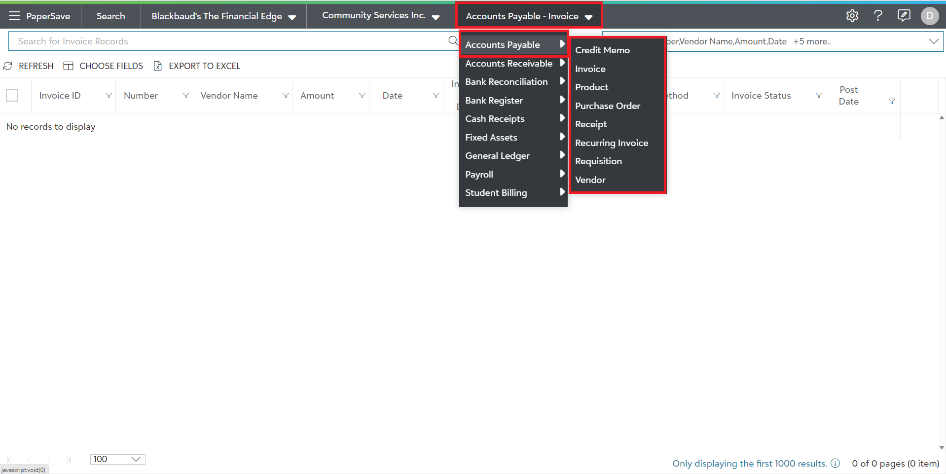 As you select the Integrated Application, it will display the tiles for available record types. Select a desired record type from the given tiles: