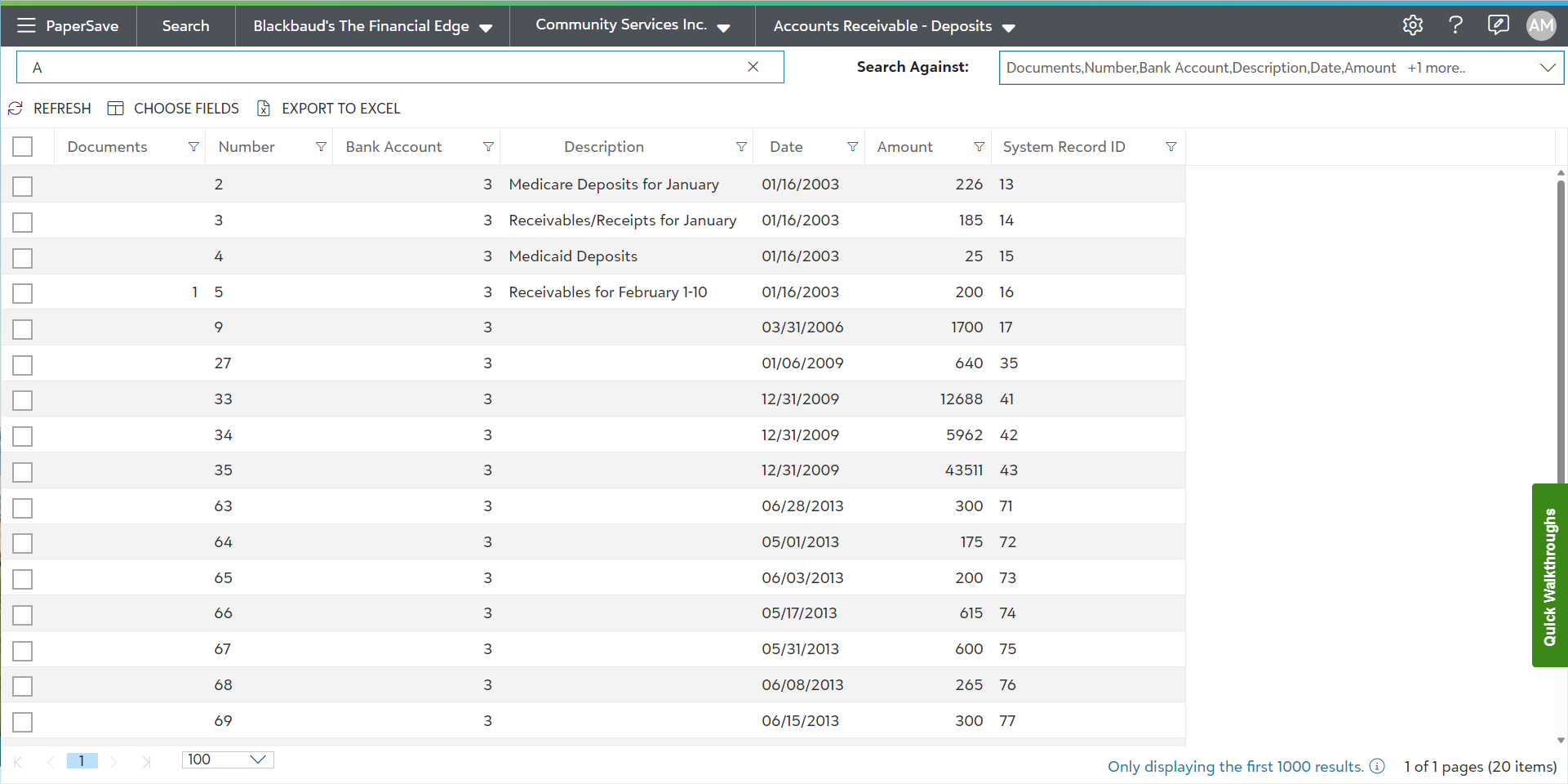 Tip: You can view the related documents for a record in the chosen integrated application context by double clicking on that particular record. The Record must have documents attached to it.