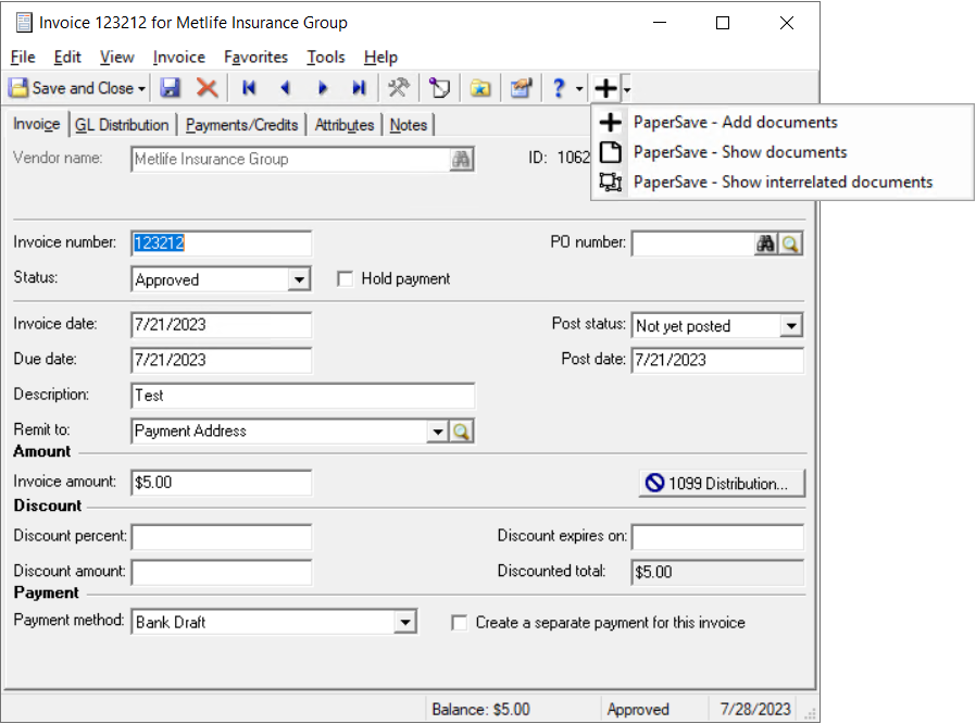Warning: To access PaperSave options, you must first enable PaperSave from the PaperSave Windows available in the Plug-Ins in the Financial Edge bar. Click here to view the steps to enable/disable PaperSave.