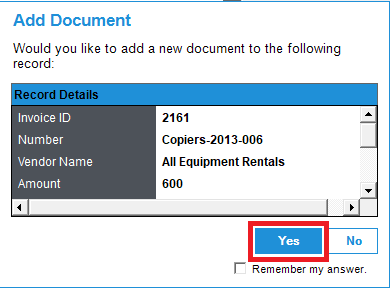 Note: You can also click on Yes, when a add document dialog box appears after saving the record from Records and Batch section, as shown below.
