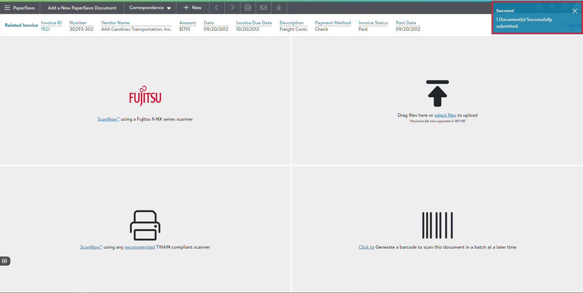 Once you validate the profile fields, you can save the acquired document to add it to an Financial Edge record.