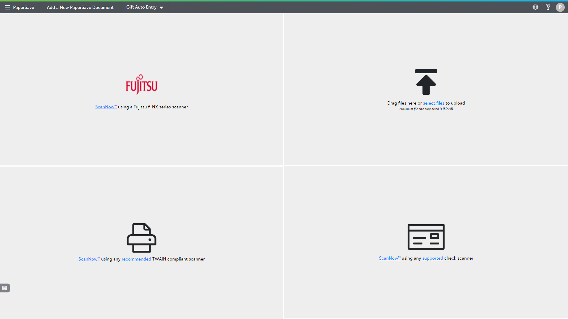 You can acquire the documents to already available Workflow by using supported File Capture options such as "Scan using Fujitsu fi-NX", "Scan using TWAIN compliant scanner", Scan using Check Scanner (for specific scenarios only) or "Drag items here or select the files to upload from file explorer".
