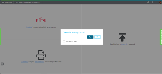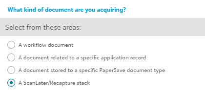 PaperSave offers you the “A ScanLater/Recapture stack” option in the Acquire area to add a stack of documents to previously generated ScanLater coversheets. Follow the below steps to use this option: