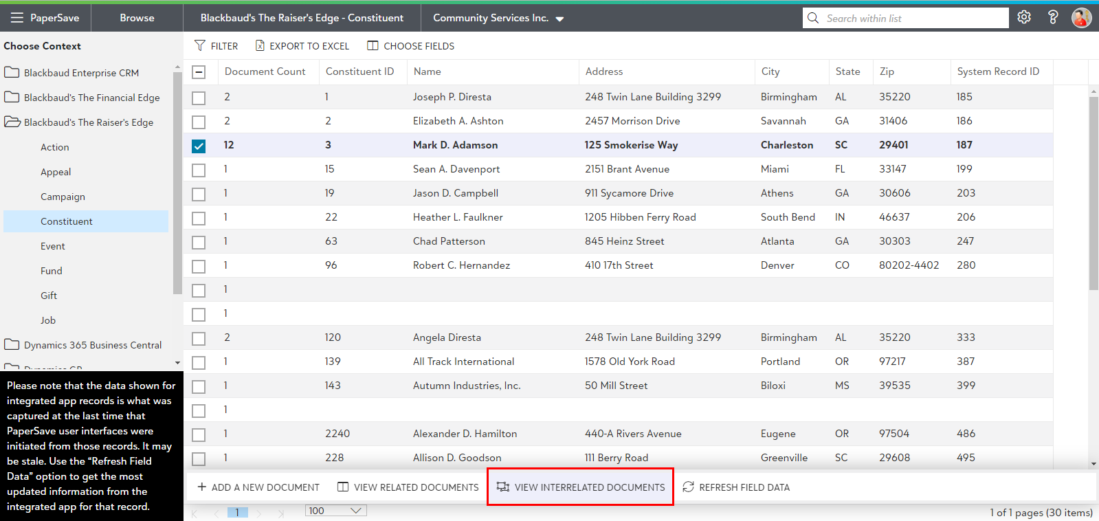 Follow the below steps to view the interrelated documents for an integrated app record: