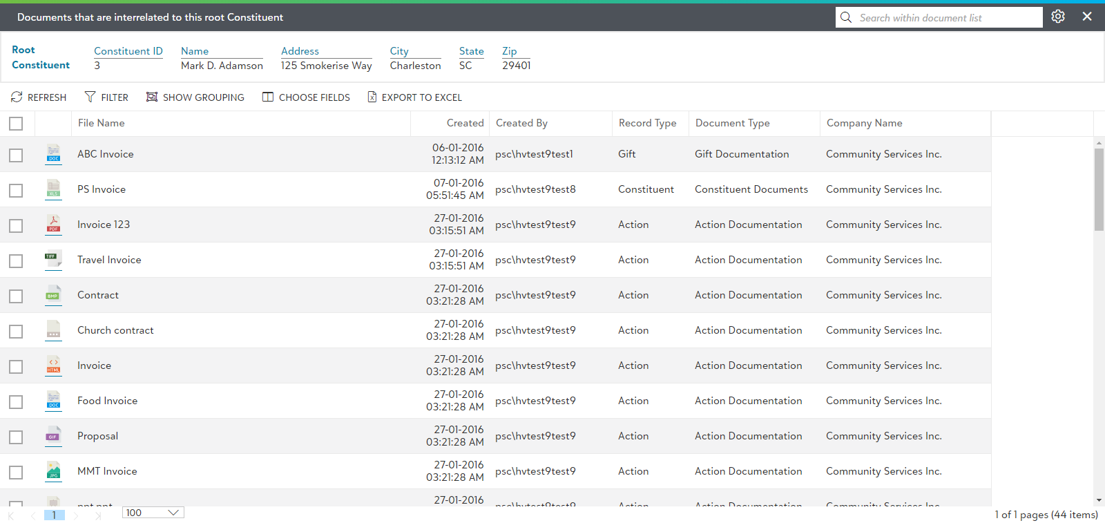 5) It will display the list of interrelated documents for the selected record, as shown below.