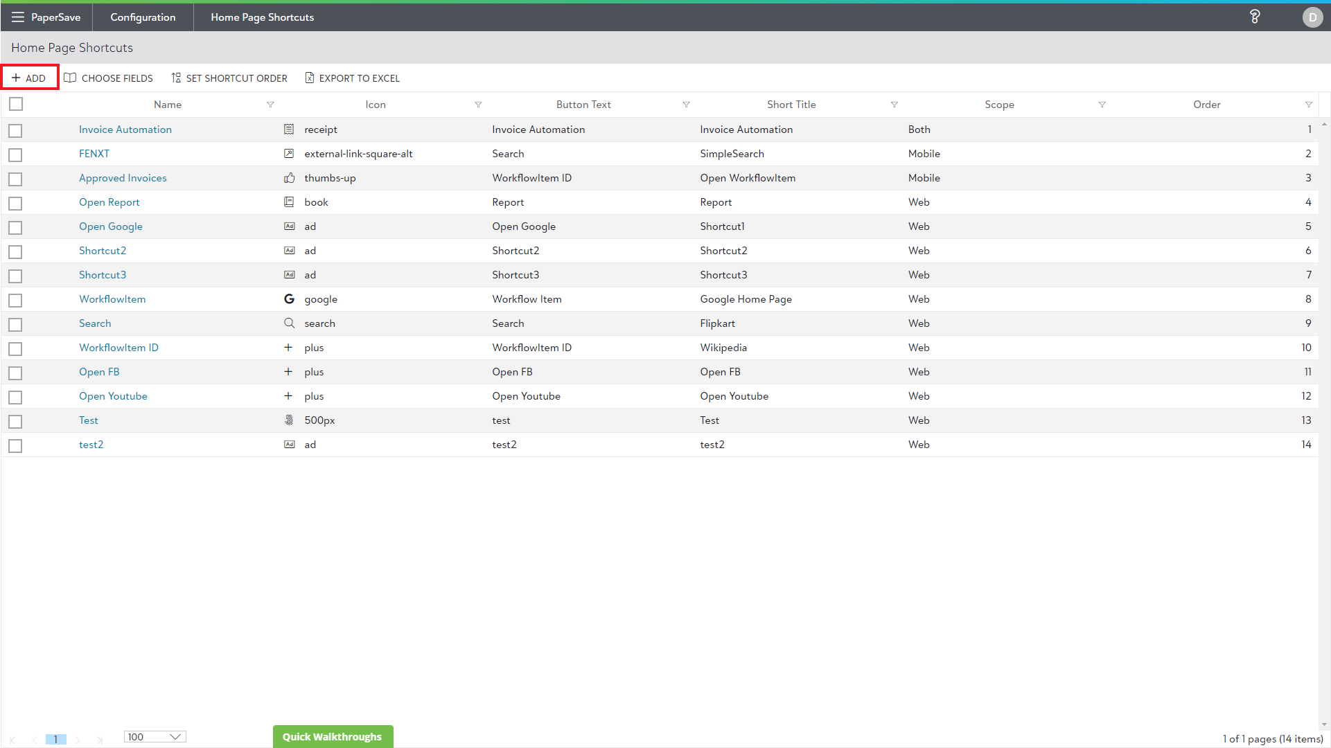 The following are the steps to add a custom shortcut to PaperSave Home: