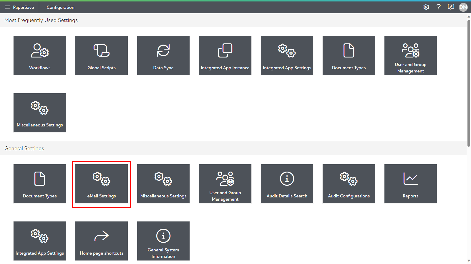 PaperSave allows you to define preferences related to Workflow email notifications (that are sent to Workflow step owner to review the assigned Workflow items) or email alerts about any unexpected errors in PaperSave (For Example, "Auto Entry Execution error", "Workflow Execution error", etc.) from the eMail Settings.