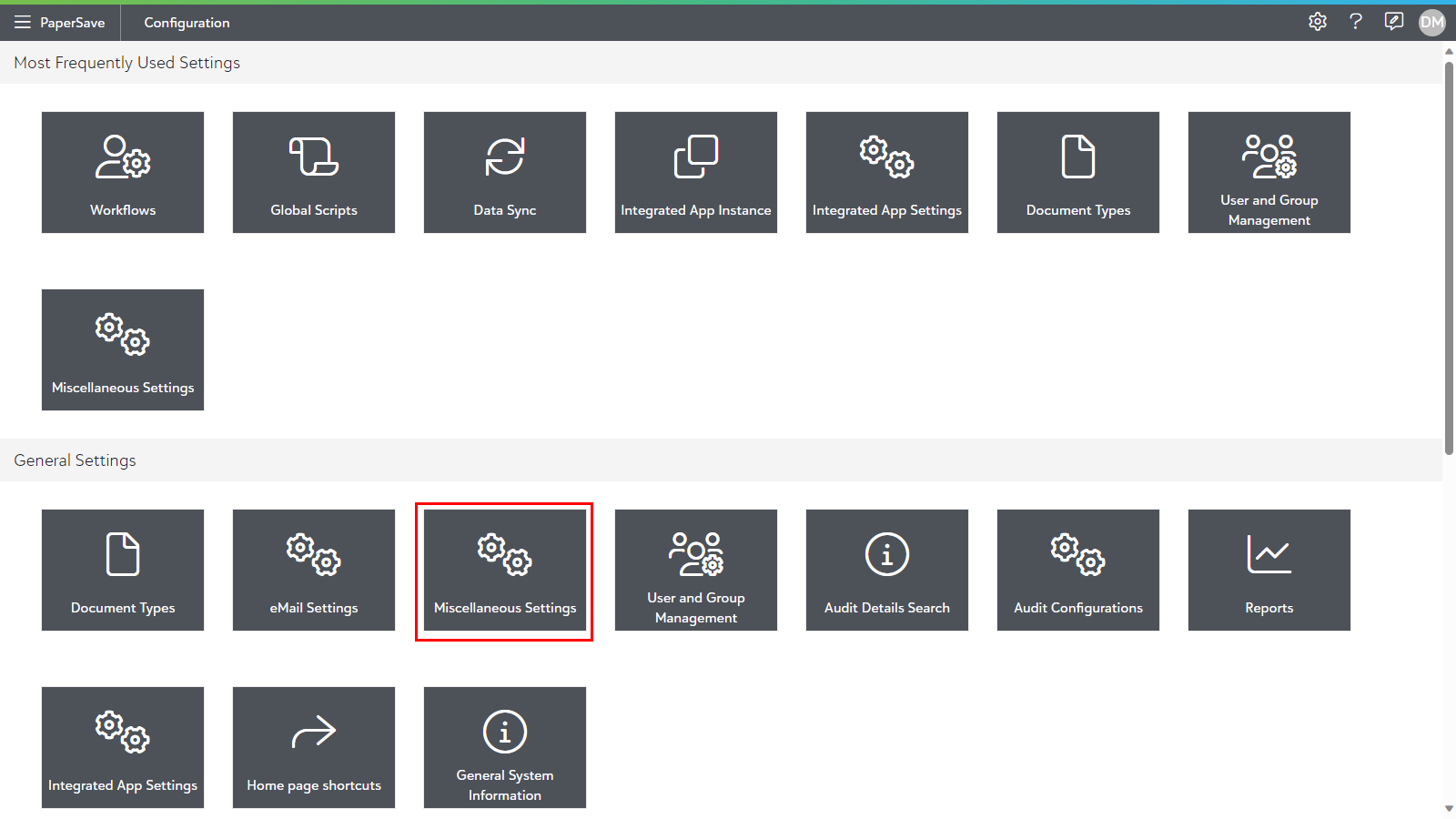 You can define PaperSave related global configurations from within the Miscellaneous Settings option.