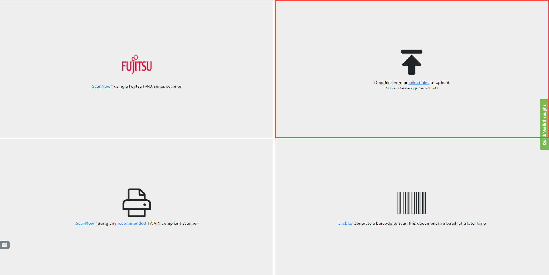 - Drag one or more documents from your file browser to drag files tile in the file capture options panel.