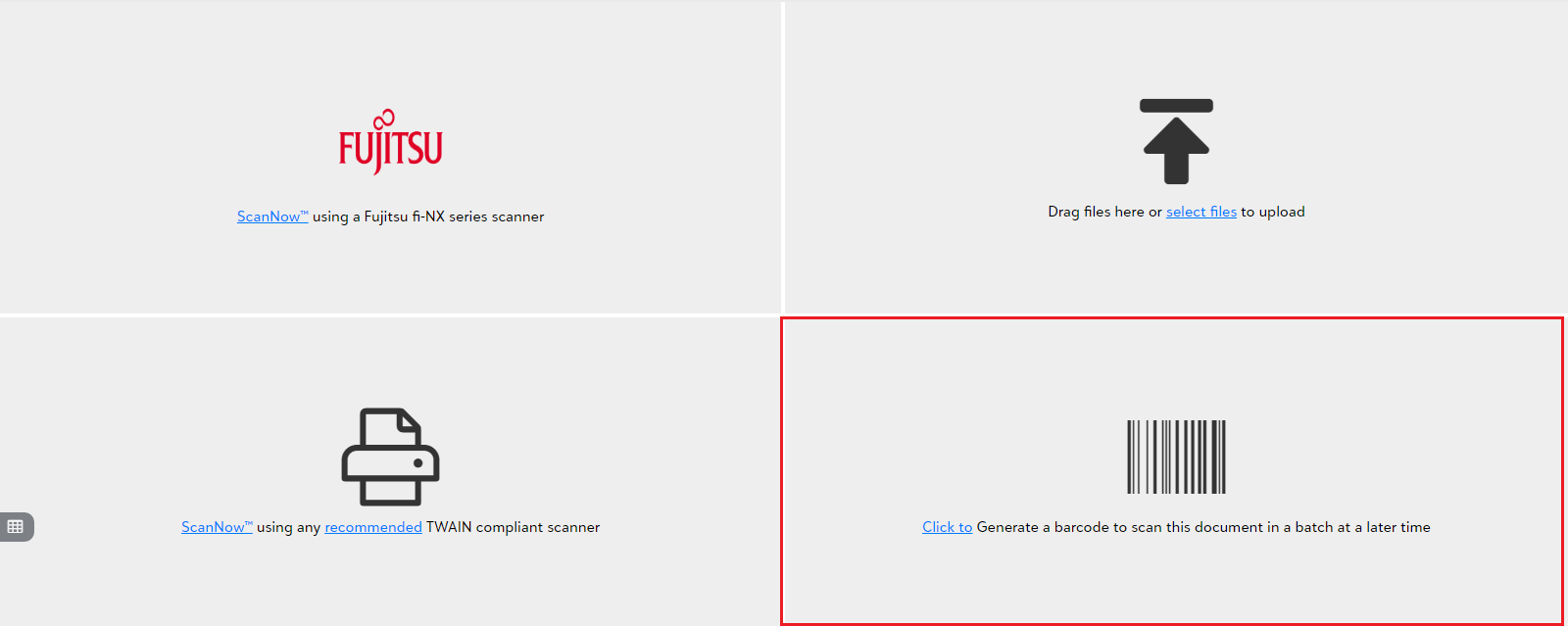 In the file capture option panel, you get an option to generate a barcode using which you scan the documents in a batch at a later time.