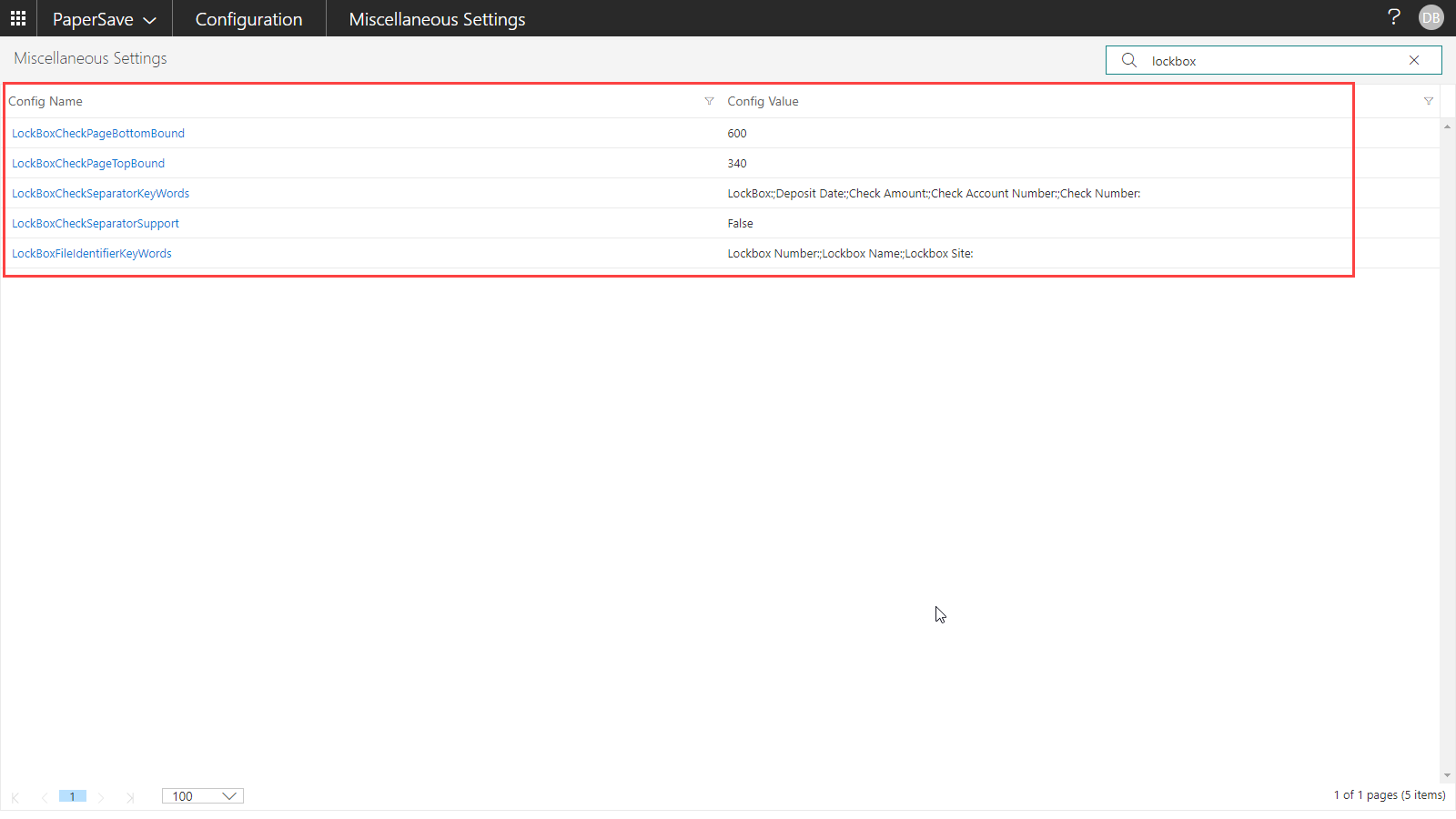 | LockBoxCheckSeparatorSupport | False | Change the value to True to enable the lockbox functionality in PaperSave |
