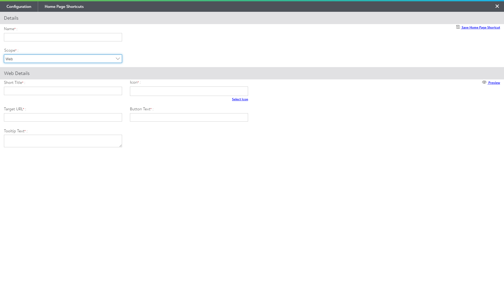 - Short Title: Enter the title to be displayed in the shortcut tile.