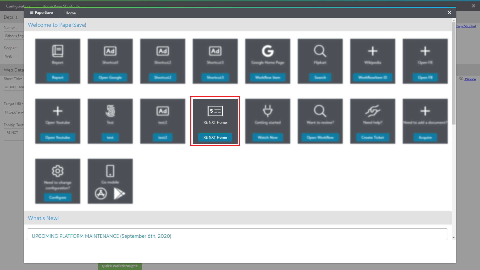The following are the steps to add a custom shortcut to PaperSave Home: