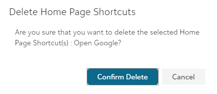 • Once you click on the Delete Home Page Shortcut option, a confirmation message will appear, as shown on the below screen.
