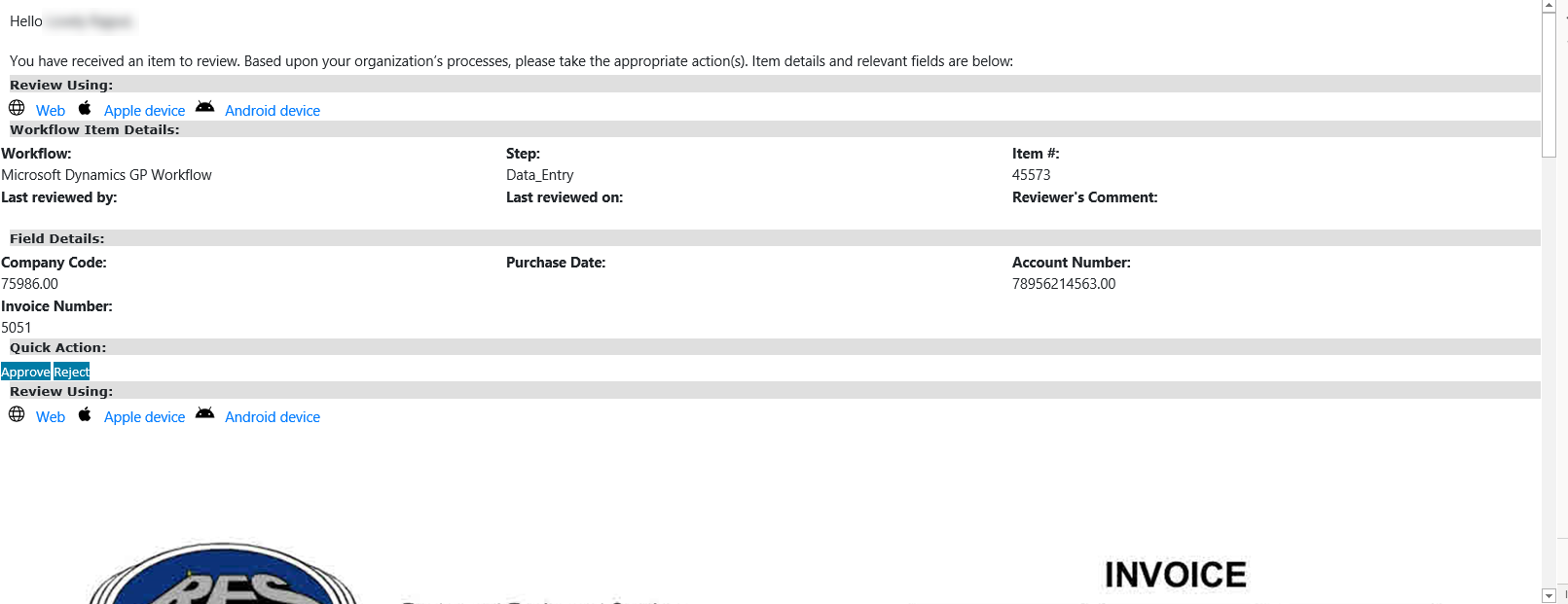 4) Review Using: This section provides you the following three ways to review the Workflow item received in the email. You can click on the review hyperlink to view the Workflow item in respective PaperSave application variant.