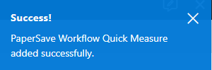 5) Click on the Save Workflow Quick Measure option to save the newly created Workflow Quick Measure and it will prompt the success/failure notification as shown in the following screenshot.