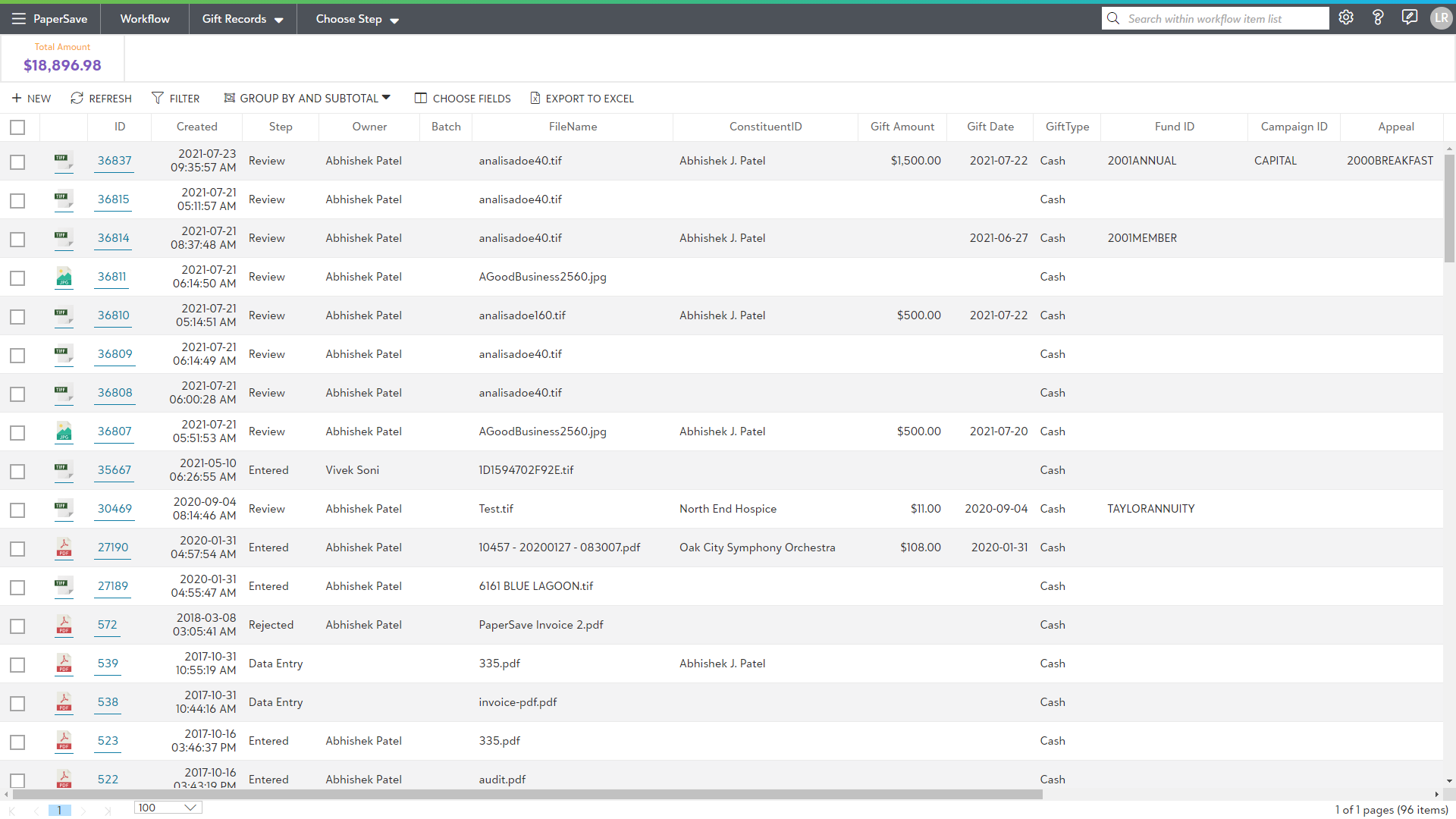 The results will be displayed for the specified Workflow under the application bar in the Workflow item list, as shown in the below screen: