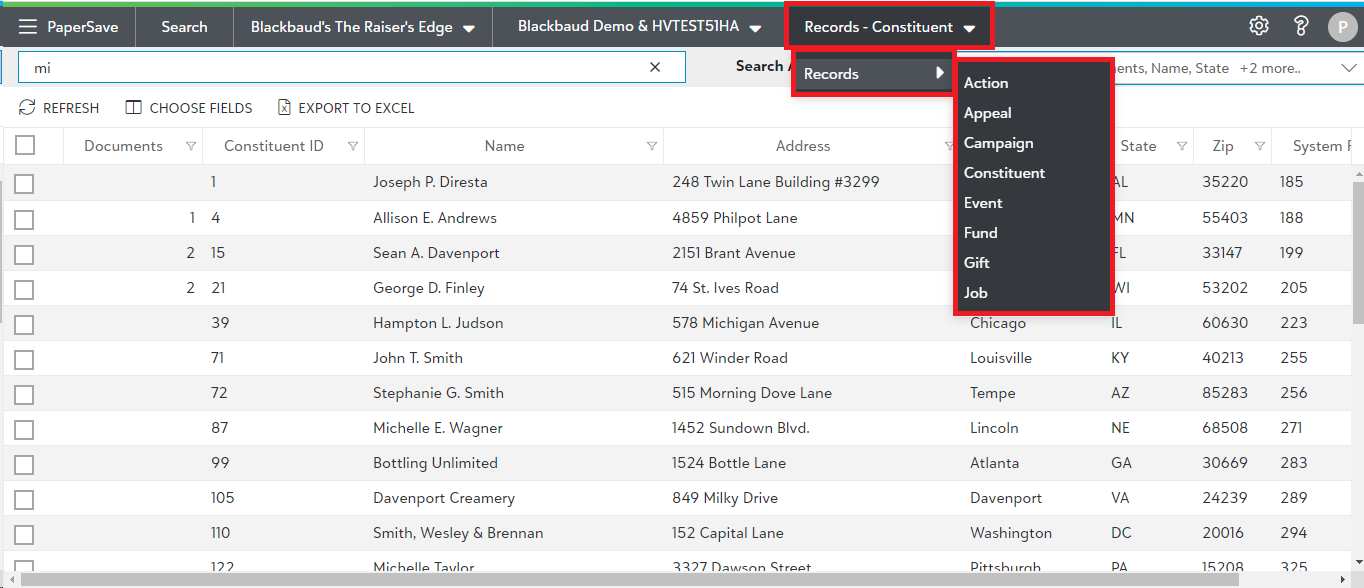 Searching documents for Integrated App records