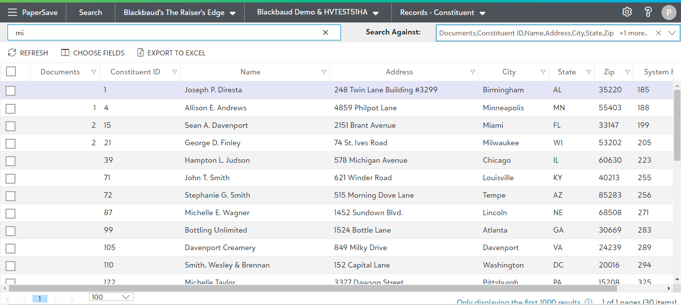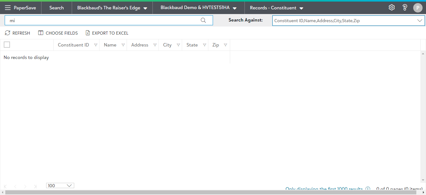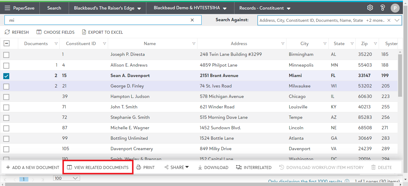 Tip: You can view the related documents for a record in the chosen integrated application context by double clicking on that particular record. The Record must have documents attached to it.