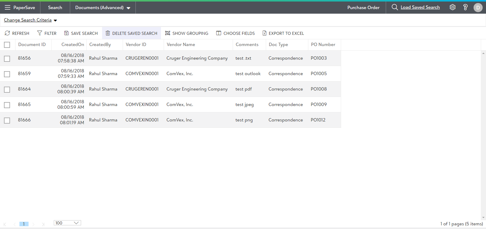 Note: Delete Saved Search option gets enabled only when the loaded Saved Search was created by the current user.