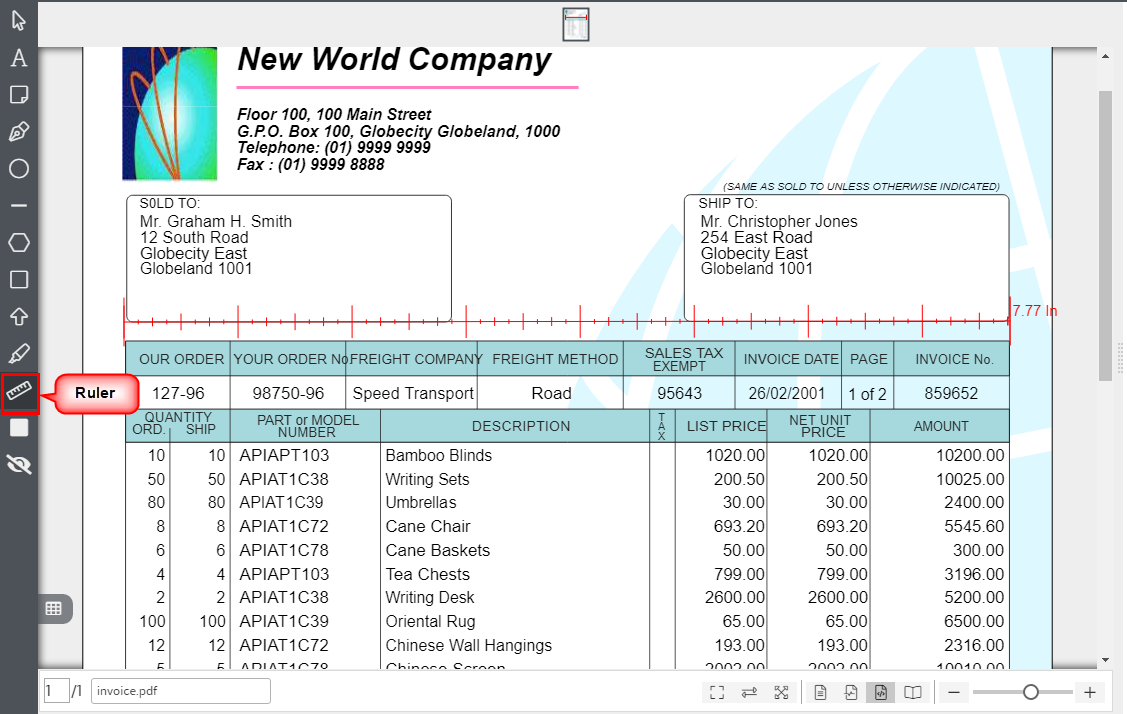 Ruler: This tool is used to measure the actual length of a part of the page of the current document.
