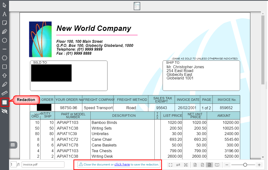 You will need to confirm the redaction once it has been applied by clicking on the "Click here" link as shown in the above figure to save the redaction changes.