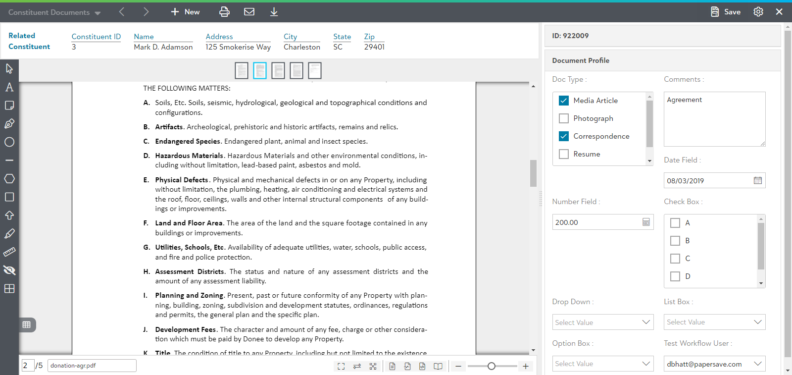 Various operations can be performed on the documents while working with them in the document viewer such as editing fields, adding annotations, saving one or more documents.