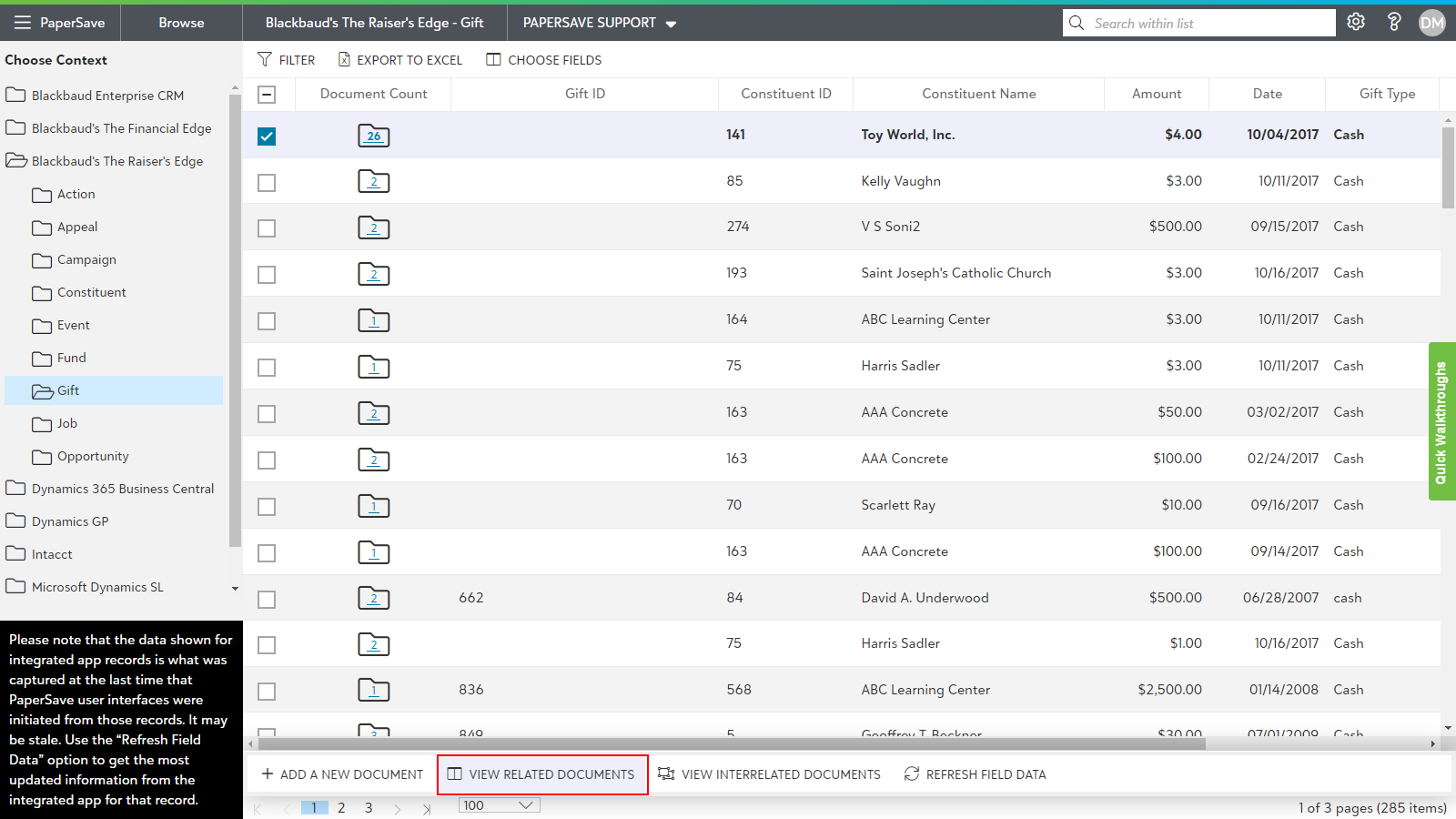 - Choose the context from the tree view for the desired record type in an integrated application.