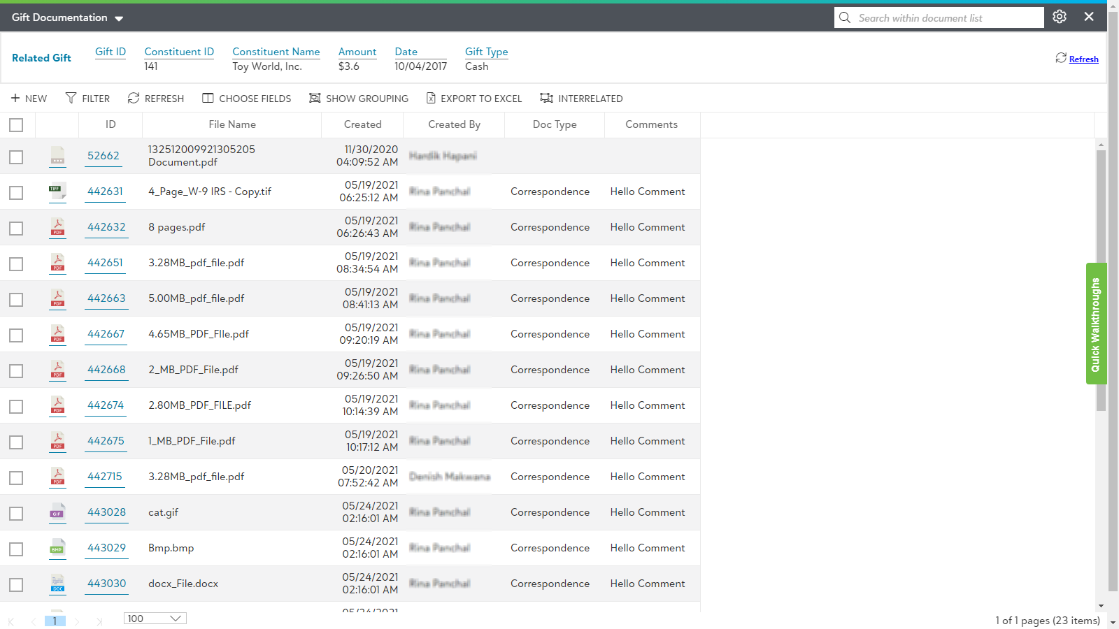 Tip: You can double-click on any document from the list to open it in the item viewer.