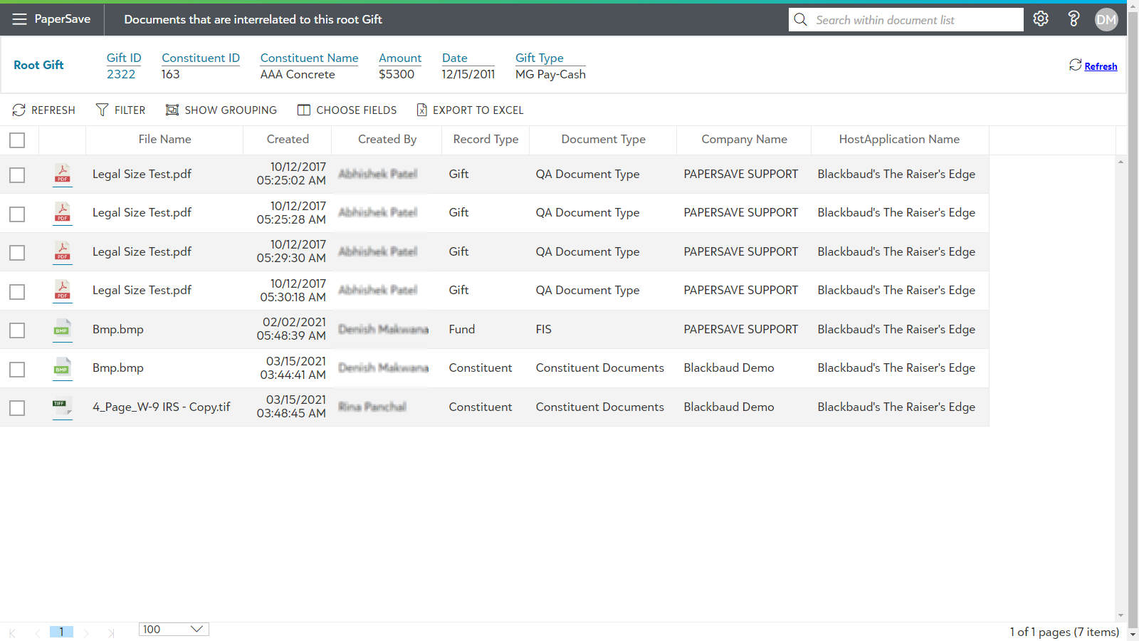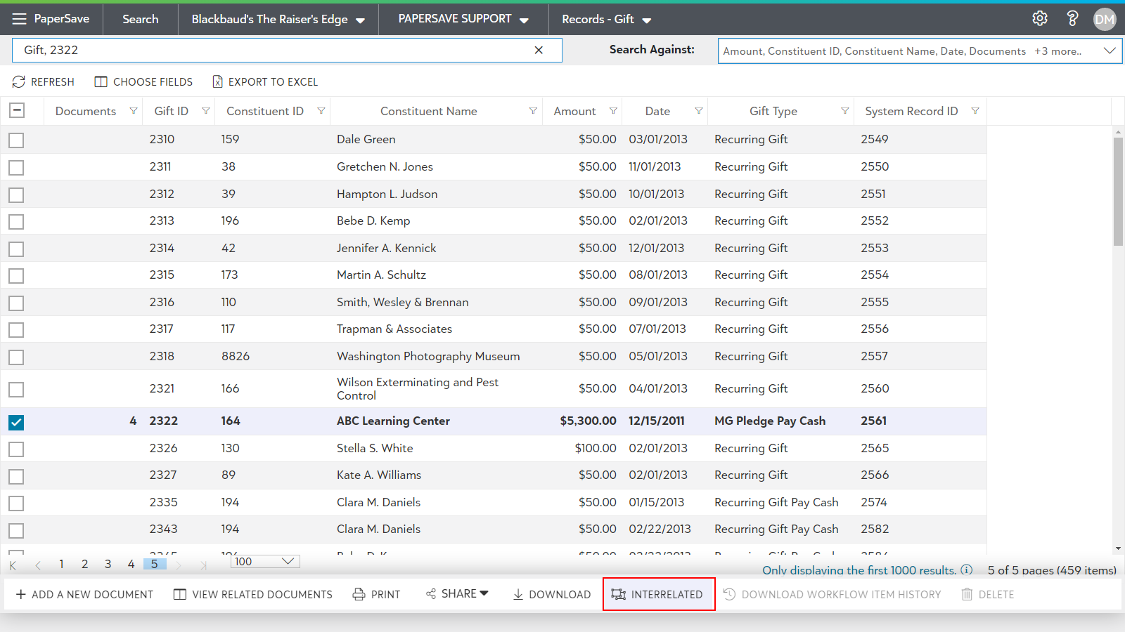 You can view the associated documents that are indirectly related to any record in an integrated application that PaperSave is integrated into. Follow the below steps to view the interrelated documents for Raiser's Edge record: